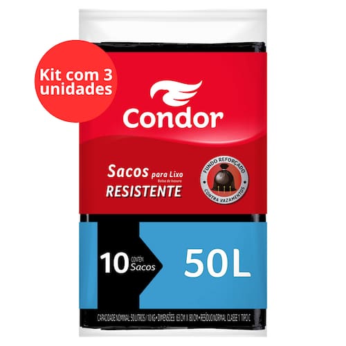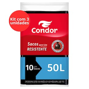 Kit Saco para Lixo Tipo C 50l Condor 10 Unidades - 3 Unidades Praticidade e resistência no descarte diário: o Kit Saco para Lixo Tipo C 50L Condor suporta peso com segurança, é fácil de manusear e garante higiene em casa ou empresa. Marca: Não Informado