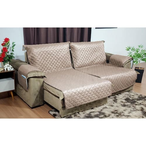 Tamanho: 1,80m comprimento medida do assento x 2,40m altura Composição: 100% poliéster Produto matelado com linha e acabamento premium Lavável à máquina Contém elásticos para fixação