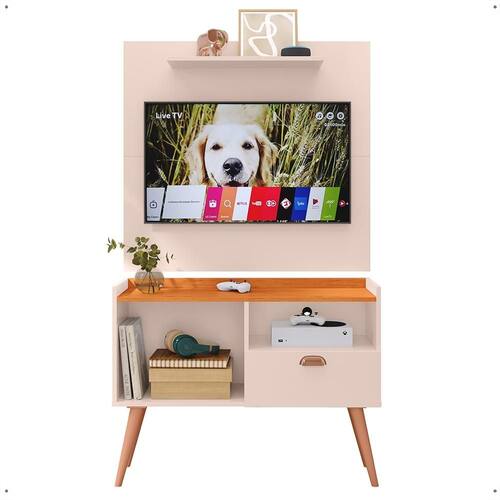 O painel conta com uma prateleira organizadora, ideal para acomodar itens decorativos e eletrônicos. Já o Rack possuí dois nichos espaçosos, o que facilita na organização. Seu puxador lauren agrega modernidade e beleza ao móvel.