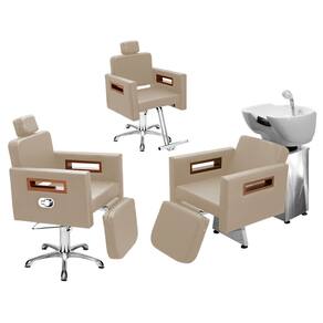 Kit Salão de Beleza 1 Cadeira Fixa + 1 Reclinável C/Ap Estrela + 1 Lavatório C/Ap Base Inox Tunísia - Cor: BrancoPérola