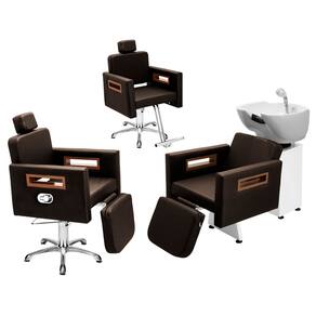Kit Salão de Beleza 1 Cadeira Fixa + 1 Reclinável C/Ap Estrela + 1 Lavatório C/Ap Tunísia - Cor: MarromCafé