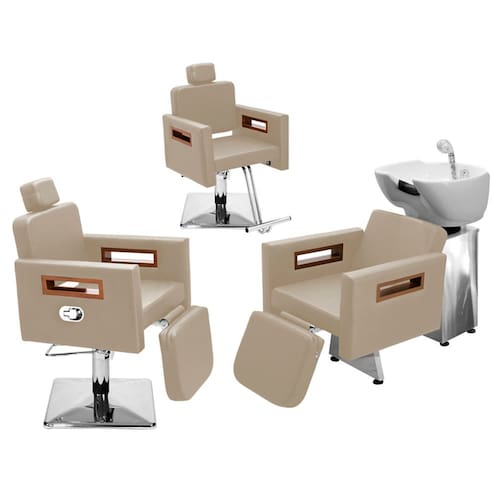 O Kit Salão de Beleza Túnisia é completo para você, profissional, equipar o seu espaço com elegância e sofisticação! Contendo: - 01 Cadeira Tunísia Encosto FIXO (que não deita o encosto): base hidráulica, cabeçote ajustável e removível.