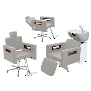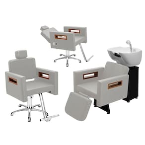 Kit Salão de Beleza 1 Cadeira Fixa + 1 Reclinável Estrela + 1 Lavatório C/Ap Tunísia - Cor: BrancoFacto