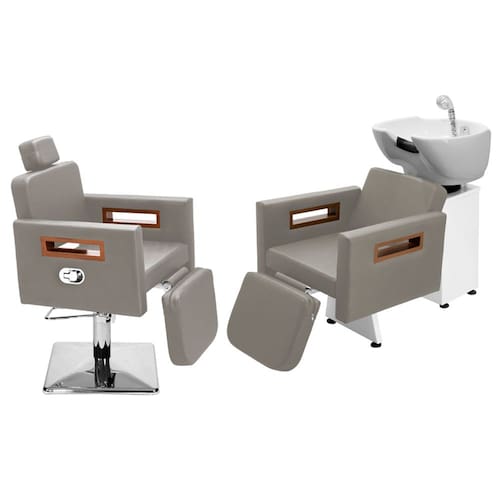 Kit Salão de Beleza 1 Cadeira Reclinável C/Ap Quadrada + 1 Lavatório C/Ap Tunísia - Cor: Fendi