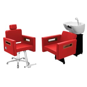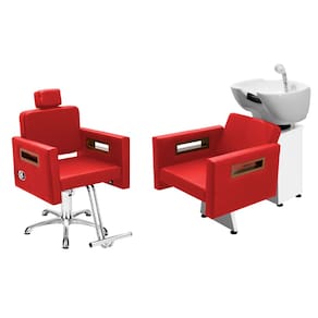 Kit Salão de Beleza 1 Cadeira Reclinável Estrela + 1 Lavatório Tunísia - Cor: Vermelho