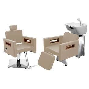 Kit Salão de Beleza 1 Cadeira Reclinável Quadrada + 1 Lavatório C/Ap Base Inox Tunísia - Cor: BrancoPérola