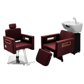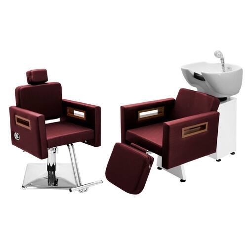 Kit Salão de Beleza 1 Cadeira Reclinável Quadrada + 1 Lavatório C/Ap Tunísia - Cor: Bordô