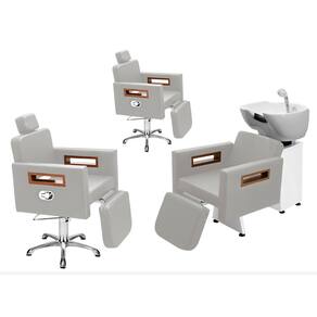 Kit Salão de Beleza 2 Cadeiras Reclináveis C/Ap Estrela + 1 Lavatório C/Ap Tunísia - Cor: BrancoFacto