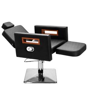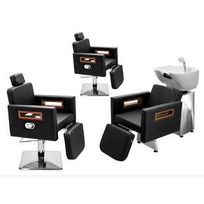 Kit Salão de Beleza 2 Cadeiras Reclináveis C/Ap Quadrada + 1 Lavatório C/Ap Base Inox Tunísia - Cor: PretoFacto