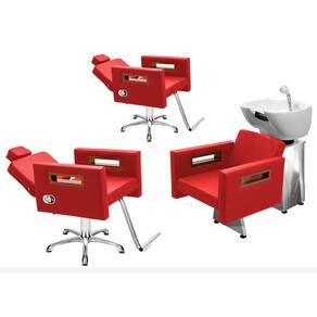 Kit Salão de Beleza 2 Cadeiras Reclináveis Estrela + 1 Lavatório Base Inox Tunísia - Cor: Vermelho
