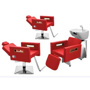 Kit Salão de Beleza 2 Cadeiras Reclináveis Quadrada + 1 Lavatório C/Ap Base Inox Tunísia - Cor: Vermelho