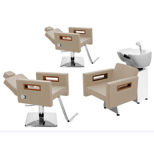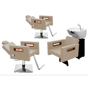 Kit Salão de Beleza 2 Cadeiras Reclináveis Quadrada + 1 Lavatório Tunísia - Cor: BrancoPérola