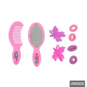 KIT Salão de Beleza Infantil Acessórios Sor Transforme o quarto da sua pequena em um verdadeiro salão de beleza com o encantador Kit Salão de Beleza, Com uma seleção divertida e segura de itens, esse kit estimula a imaginação, desenvolve habilidades motoras e garante horas de brincadeira criativa.\nRepleto de acessórios coloridos como escova, pente, secador de mentira, espelhinho, maquiagem de faz-de-conta e muito mais, o kit é ideal para as crianças que adoram brincar de se arrumar, cuidar do visual das bonecas ou até montar um mini salão com as amigas.\nDisponível em cores e modelos .\nEspecificações:\nMarca : ARK BRASIL\nTipo de material : Plástico\nCores ou Estampa :\nDimensões do Produto : 15 X 12 X 2 CM\nDimensões da Embalagem : 15 X 12 X 2 CM\nPeso Bruto (Gramas) : 0.018
