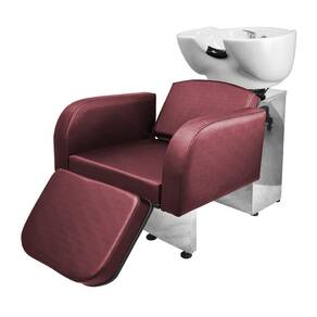 - 1 Lavatório Porcelana Destak Com Apoio Base Inox: com um design clean, braços estofados com detalhe arredondado na ponta, espuma de alta densidade, assento amplo e um apoio de pernas estofado com regulagem de altura que proporcionam conforto e comodidade para seu cliente durante a lavagem do cabelo. Cuba de porcelana branca com ajuste de altura e com ducha cromada e registro que tem a função de manocomando, que permite que você altere a temperatura da água sem precisar mexer na chave do aquecedor! Tudo isso com a alta resistência da base de ferro inox!