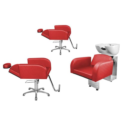 Kit Salão Destak 2 Cadeiras Recl Base Estrela + Lavatório Vermelho Facto
