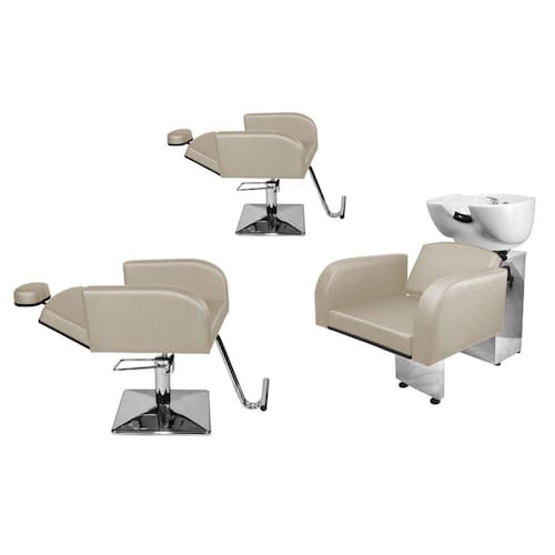 - 1 Lavatório Porcelana Destak Base Inox: com um design clean, braços estofados com detalhe arredondado na ponta, espuma de alta densidade e assento amplo que proporcionam conforto e comodidade durante o atendimento. Cuba de porcelana branca com ajuste de altura e com ducha cromada e registro que tem a função de manocomando, que permite que você altere a temperatura da água sem precisar mexer na chave do aquecedor! Tudo isso com a alta resistência da base de ferro inox!