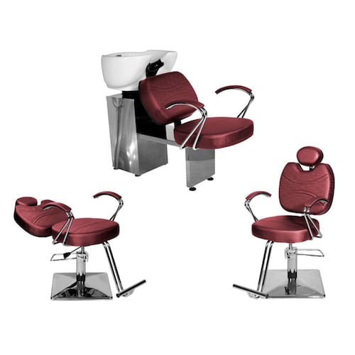 - 1 Lavatório Topázio Base Inox: com um design autêntico, acabamento em costura, assento amplo em espuma de alta densidade que proporcionam conforto durante o atendimento, braços em ferro cromado com estofado, cuba de porcelana branca com ajuste de altura, ducha cromada e registro com função manocomando que trazem praticidade pra você durante a lavagem dos cabelos. Tudo isso com a alta resistência da base de ferro inox!