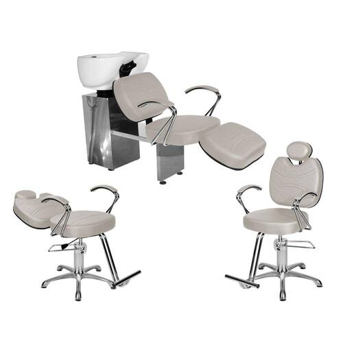 - 1 Lavatório Topázio Com Apoio Base Inox: com um design autêntico, acabamento em costura, assento amplo em espuma de alta densidade e apoio de pernas estofado com regulagem de altura que proporcionam conforto durante o atendimento, braços em ferro cromado com estofado, cuba de porcelana branca com ajuste de altura, ducha cromada e registro com função manocomando que trazem praticidade pra você durante a lavagem dos cabelos. Tudo isso com a alta resistência da base de ferro inox!