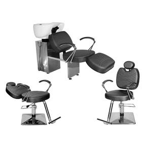 Kit Salão Topázio 1 Fixa + 1 Recl Base Quadrada + Lavatório C/Ap Preto