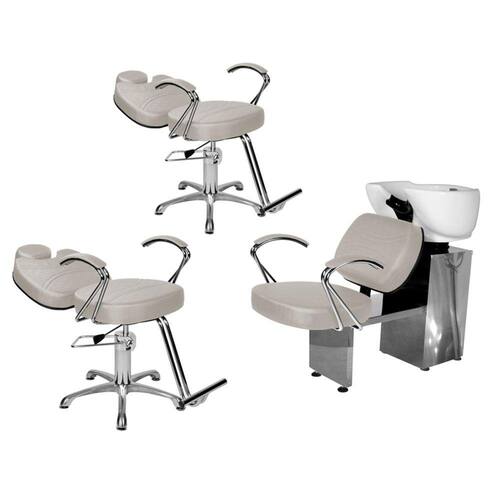 - 1 Lavatório Topázio Base Inox: com um design autêntico, acabamento em costura, assento amplo em espuma de alta densidade que proporcionam conforto durante o atendimento, braços em ferro cromado com estofado, cuba de porcelana branca com ajuste de altura, ducha cromada e registro com função manocomando que trazem praticidade pra você durante a lavagem dos cabelos. Tudo isso com a alta resistência da base de ferro inox!