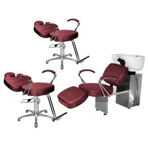 Kit Salão Topázio 2 Cadeiras Recl Base Estrela + Lavatório C/Ap Bordô