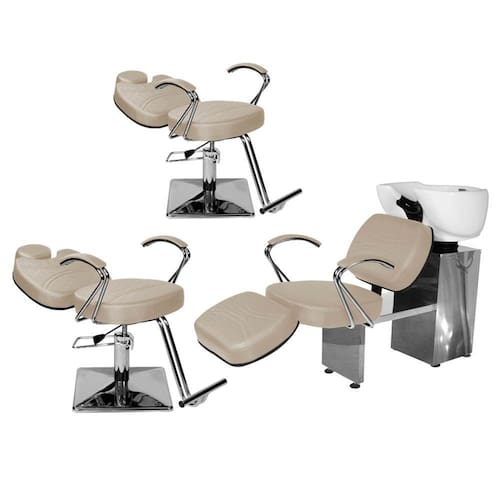 - 1 Lavatório Topázio Com Apoio Base Inox: com um design autêntico, acabamento em costura, assento amplo em espuma de alta densidade e apoio de pernas estofado com regulagem de altura que proporcionam conforto durante o atendimento, braços em ferro cromado com estofado, cuba de porcelana branca com ajuste de altura, ducha cromada e registro com função manocomando que trazem praticidade pra você durante a lavagem dos cabelos. Tudo isso com a alta resistência da base de ferro inox!