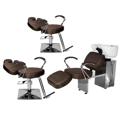 - 1 Lavatório Topázio Com Apoio Base Inox: com um design autêntico, acabamento em costura, assento amplo em espuma de alta densidade e apoio de pernas estofado com regulagem de altura que proporcionam conforto durante o atendimento, braços em ferro cromado com estofado, cuba de porcelana branca com ajuste de altura, ducha cromada e registro com função manocomando que trazem praticidade pra você durante a lavagem dos cabelos. Tudo isso com a alta resistência da base de ferro inox!