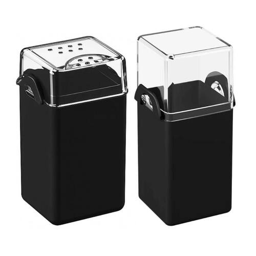 Kit Saleiro Pimenteiro e Paliteiro de Mesa 5x4x9cm Preto Coza Porta Condimentos Dispenser Palitos.