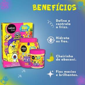 Transforme a rotina de cuidados dos pequenos em um momento de pura diversão com o Kit Salon Line Kids Bob Esponja Sos Cachos. Desenvolvido especialmente para os cabelos infantis, este kit completo da SALON LINE garante cachinhos super hidratados, definidos e totalmente sem frizz. Com a magia do Bob Esponja, seus filhos terão uma experiência alegre e prática, resultando em cabelos macios e cheirosos com um delicioso perfume de abacaxi.