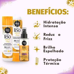 O Kit Salon Line Meu Liso Muito + Liso é a solução completa e ideal para quem busca fios perfeitamente alinhados, soltos e radiantes. Desenvolvido pela renomada marca SALON LINE, este kit exclusivo oferece um tratamento capilar otimizado, promovendo hidratação intensa, nutrição profunda e um perfume irresistível. É a escolha perfeita para transformar a rotina de cuidados, garantindo um liso impecável, macio e totalmente livre de frizz, com a vantagem adicional de proteção térmica.