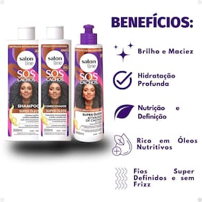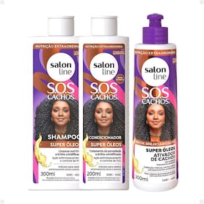 O Kit Salon Line SOS Cachos Super Óleos é uma solução completa para cabelos cacheados e crespos, oferecendo cuidados desde a limpeza até a finalização. O shampoo limpa suavemente os fios enquanto nutre e combate o ressecamento, além de proporcionar brilho umidificado e vitalidade aos cabelos. O condicionador hidrata profundamente, desembaraça e sela as cutículas dos fios, garantindo maciez e facilitando o penteado. O ativador de cachos define os cachos, controla o frizz e oferece uma finalização impecável, proporcionando brilho e nutrição, além de ajudar na definição dos cachos.