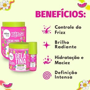 O Kit Salon Line Xêrosa Vibes Pop é perfeito para a sua rotina de beleza diária, seja para preparar os cabelos antes de sair ou para um tratamento intensivo em casa. É a escolha ideal para quem deseja manter os cabelos sempre hidratados, macios e com um brilho radiante, independentemente do tipo de fio. Ideal para usar após a praia ou piscina, para revitalizar os fios expostos ao sol e ao cloro. Perfeito para levar em viagens, garantindo que seus cabelos permaneçam impecáveis em qualquer lugar.