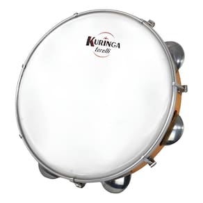 Pandeiro - Corpo em madeira de 10'' - Platinelas em aço inox - Pele em náilon fosco - Com 6 pares de platinelas e 7 afinadores - Fabricante Kuringa By Torelli - Modelo KP094