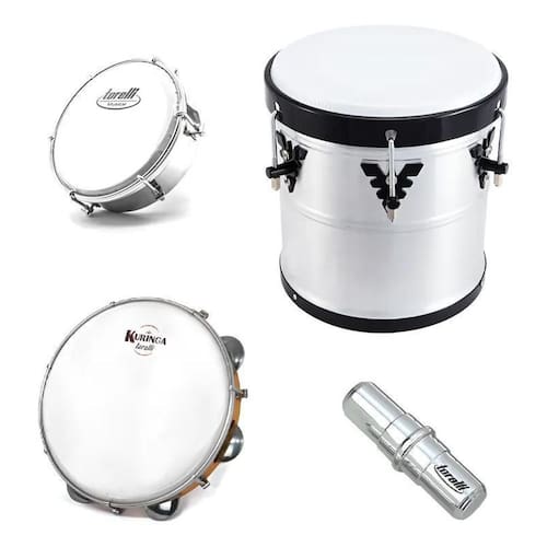 Kit Samba Pandeiro De Madeira 10'', Repique De Mão, Tamborim Em Aço E Ganzá De Alumínio