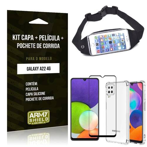 Kit Samsung A22 4G Pochete+Capa Anti Shock+Película Vidro 3D