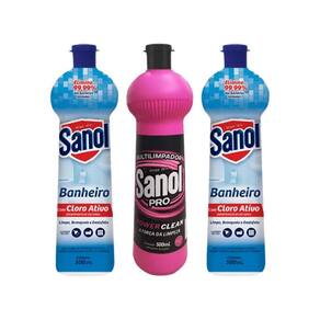 Kit sanol cloro ativo 2un + multilimpador power clean 1un Kit sanol banheiro com cloro ativo 02un e multilimpador power clean 01un
