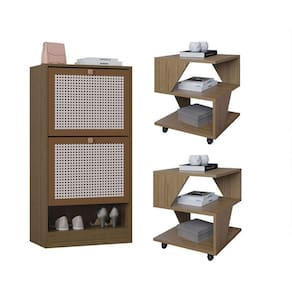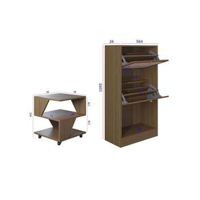 Design contemporaneo e cores modernas Estrutura em BP resistente e duravel Mesas com rodizios para facil movimentacao Sapateira com portas 3D imitando palha indiana Facil de montar produtos enviados desmontados
