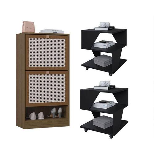 Kit Sapateira 2 Portas E 2 Mesas De Cabeceira-centro Poquema Preto-carvalho
