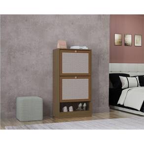A Sapateira Tropical, com design vertical e portas com pintura 3D que imita palha indiana, oferece um toque sofisticado para o ambiente, sendo perfeita para organizar sapatos em quartos, closets ou lavanderias.