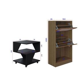 Kit Sapateira 2 Portas E 2 Mesas De Cabeceira/centro Poquema Preto/carvalho
