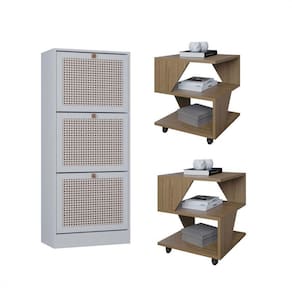 Destaques: Design contemporaneo e cores modernas Estrutura em BP resistente e duravel Mesas com rodizios para facil movimentacao Sapateira com portas 3D imitando palha indiana Facil de montar produtos enviados desmontados