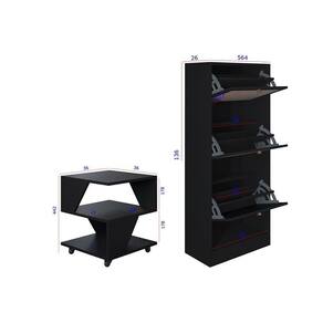 Destaques: Design contemporaneo e cores modernas Estrutura em BP resistente e duravel Mesas com rodizios para facil movimentacao Sapateira com portas 3D imitando palha indiana Facil de montar produtos enviados desmontados