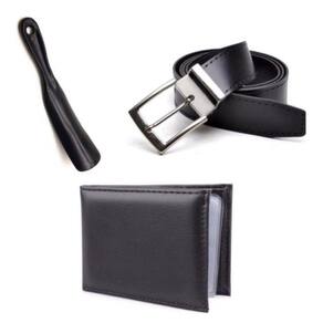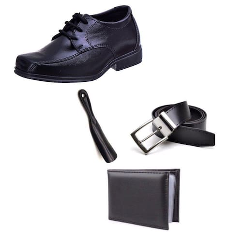 Kit Sapato Social Infantil Menino Solado PVC Cadarço Igreja Com Carteira Cinto e Calçadeira - 31 - Preto