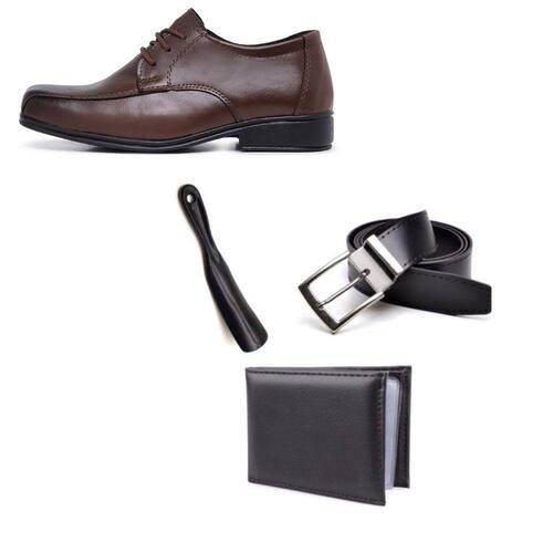 Kit Sapato Social Infantil Menino Solado PVC Cadarço Igreja Com Carteira Cinto e Calçadeira - 31 - Marrom