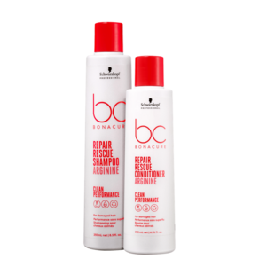 Kit com shampoo matizador e condicionador para cabelos loiros e grisalhos. Schwarzkopf Professional BC Bonacure Clean Performance Color Freeze Silver + Repair Rescue Duo ajuda a neutralizar tons quentes indesejados, com pH 4.5, reequilibrando a estrutura do cabelo para um nível de pH ideal e protegendo a cor dos fios, evitando o desbotamento, além de trazer de volta força e elasticidade internas sem sobrecarga.