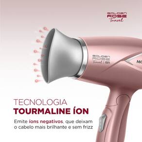Tecnologia Tourmaline Íon: ao aquecer, o mineral libera íons negativos que selam a cutícula dos fios, reduzindo o frizz e deixando o cabelo mais macio e brilhante.
