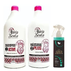 Maria Bonita Escova Progressiva reduz o frizz dos cabelos, alisa e promove brilho luminoso aos fios. O Tratamento Plus Equilibra o PH dos fios reconstruindo as fibras constituintes dos cabelos. Sua função consiste em devolver brilho e maciez aos fios, deixando-os fortes e om a cutícula alinhada.