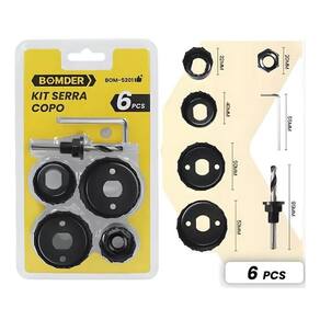 Kit Serra Copo Para Madeira, Gesso e PVC - Qualidade Kit Jogo de Serras Copo - Ideal para Madeira, Gesso e PVC O Kit Jogo de Serras Copo oferece a versatilidade e qualidade necessárias para uma variedade de aplicações em trabalhos de carpintaria, construção e projetos de bricolagem. Composto por 6 peças de alta qualidade, este conjunto é projetado para cortar com precisão madeira, gesso, PVC, plástico e outros materiais similares. Características: Inclui Chave e Chave Allen: O kit vem completo com uma chave e uma chave Allen para garantir uma instalação fácil e segura das serras copo. Ampla Variedade de Tamanhos: O conjunto contém serras copo nos seguintes tamanhos: 1-1/4 32mm , 1-1/2 38mm , 2 51mm e 2-1/8 53mm , proporcionando opções para diferentes necessidades de corte. Material de Alta Qualidade: Fabricadas com materiais resistentes e duráveis, as serras copo deste conjunto são projetadas para oferecer desempenho consistente e duradouro. Compatibilidade Versátil: Adequadas para cortar uma variedade de materiais, incluindo madeira, gesso, PVC, plástico e muito mais, tornando-as ideais para uma ampla gama de projetos. Fácil de Usar: As serras copo são projetadas para serem fáceis de instalar e remover, proporcionando conveniência e eficiência durante o uso. Com o Kit Jogo de Serras Copo, você terá as ferramentas certas para realizar cortes precisos e limpos em uma variedade de materiais, facilitando seus projetos de construção e carpintaria. Marca: Não Informado