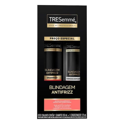 O Kit Shampoo 350ml + Condicionador 175ml Blindagem Antifrizz Tresemmé ajuda a limpar suavemente os fios, removendo impurezas e resíduos, preparando o terreno para a ação do condicionador. Juntos, eles trabalham para criar uma barreira contra a umidade, evitando que o frizz tome conta, mesmo nos dias mais desafiadores. Sua fórmula de blindagem avançada deste kit contém ingredientes de alta qualidade que ajudam a nutrir e fortalecer seus cabelos, proporcionando uma aparência saudável e vibrante. Agora, você pode aproveitar o seu dia com confiança, sabendo que seu cabelo ficará deslumbrante, suave e resistente ao frizz. Benefícios: - Hidratação; - Brilho e maciez; - Resistente ao frizz.
