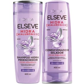 Kit shampoo 375ml e condicionador 170ml Elseve Hidra Hialurôn Transforme seus cabelos com o Kit Elseve Shampoo 375ml + Condicionador 170ml Hidra Hialurônico. Este conjunto foi especialmente formulado para proporcionar hidratação intensa e leveza, ideal para cabelos desidratados. Com a poderosa ação do ácido hialurônico, seus fios ganham um toque suave e solto, realçando a beleza natural de todos os tipos de cabelo.